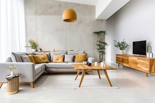 Lifestyle portrait of beautiful lady working at notebook sitting down on floor at home. Woman concept for alternative office freelance. Stay home